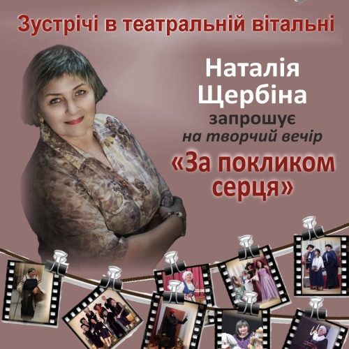 11 грудня на малій сцені театру-студії “Різнобарв’я” відбудеться теплий та щирий творчий вечір Наталії Щербіної — «За покликом серця». Наталія